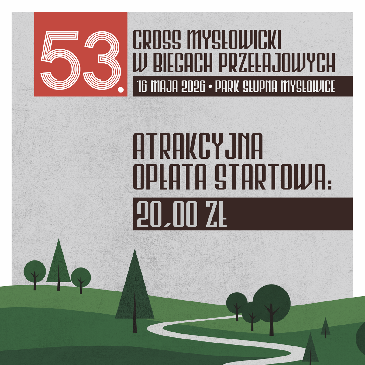 16 maja ponownie spotykamy się na trasie biegów przełajowych w Parku Słupna! Przed nami 53. edycja Crossu Mysłowickiego, która niezmiennie odbywa się pod honorowym patronatem Prezydenta Miasta Mysłowice - Dariusza Wójtowicza.