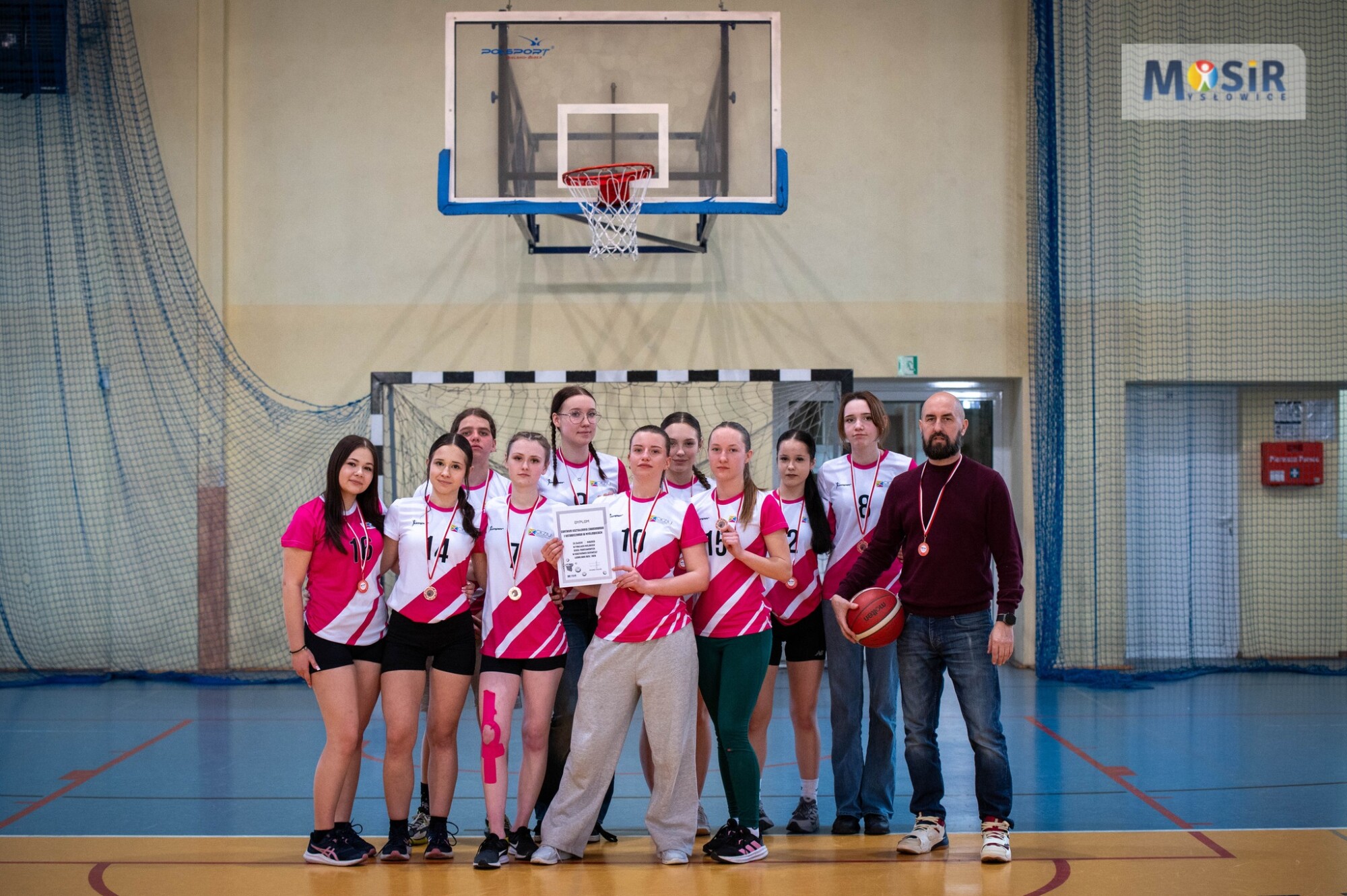 Wręczanie dyplomu za 3 miejsce koszykarkom z CKZiU