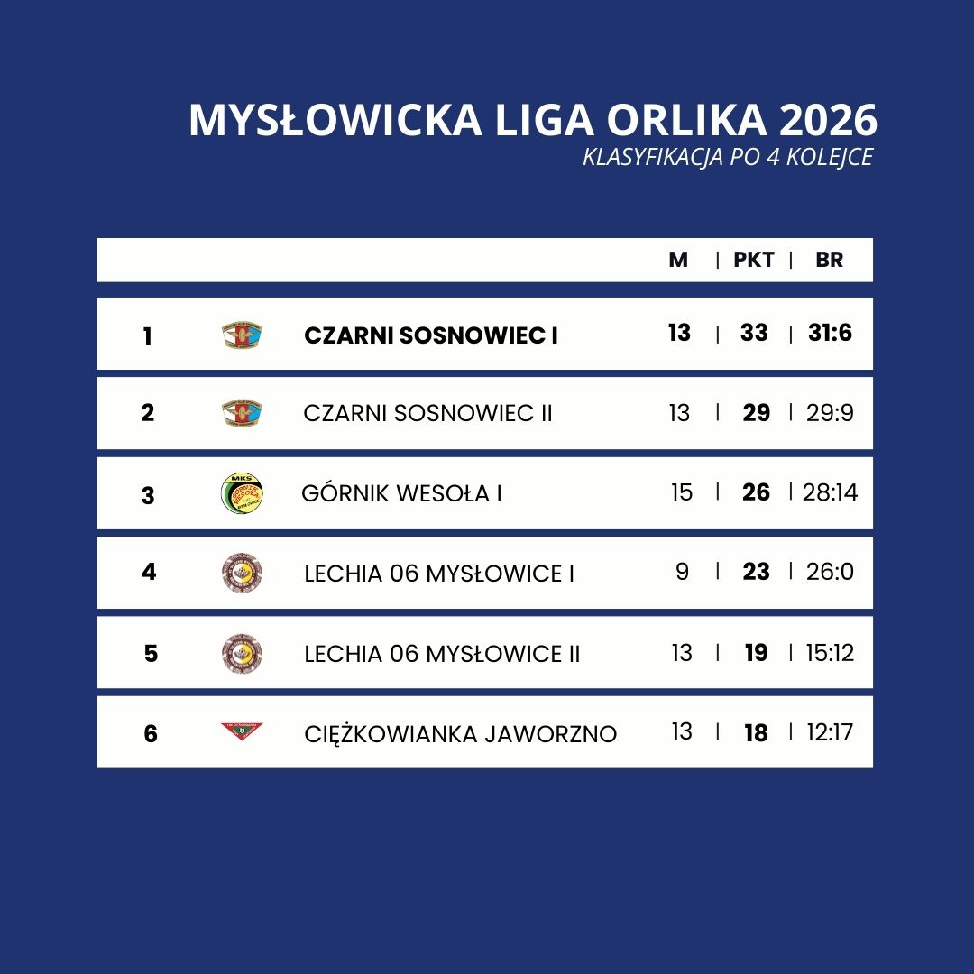 Czwarty weekend zmagań w ramach Mysłowickiej Ligi Orlika za nami! W sobotę 21 lutego na Halę Widowiskowo-Sportową przy ul. Bończyka zawitało 8 zespołów, które rywalizowały w przedostatniej kolejce ligowej.