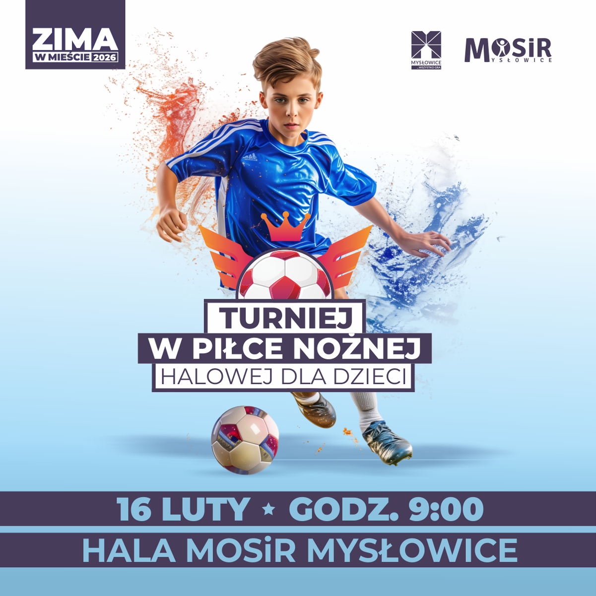 Już 16 lutego o godz. 9:00 zapraszamy drużyny z rocznika 2015 i młodszych na emocjonujący turniej piłkarski na Hali MOSiR przy ul. Bończyka 32z w Mysłowicach!